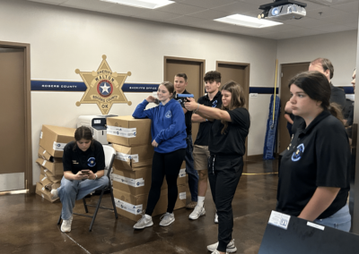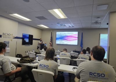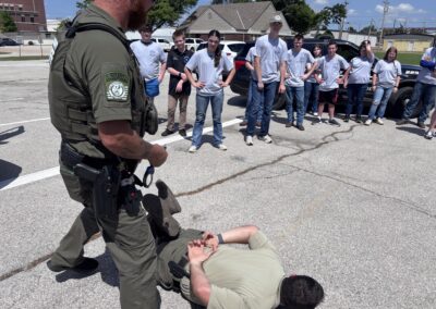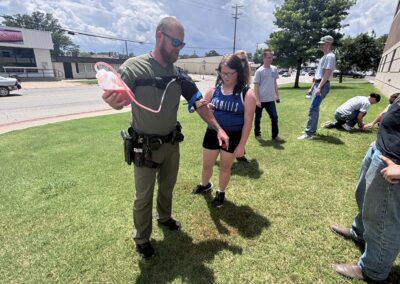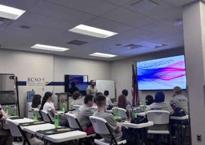 The bulk of the students education and the academy will be through practical exercises and one on one interactions with officers and emergency personnel. Some activities include working a mock crime scene after a day with the Rogers County Investigations Division, observing a K9 narcotics detection and a K9 bite demonstration, time on our in house firearms simulator and distracted/drunk driving simulators, a firearm safety orientation and the opportunity to fire simmunition pistols with paint rounds at targets, and flying RCSO drones.